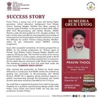 Immediately after successfully completing the training program at MGIRI he has started the work of preparing “various types of pickles” from Master Colony Sawangi Meghe, Wardha with a capacity of 100 kg per day. The monthly turnover of the different types of pickles prepared by him is Rs 1.5 lakh, out of which the profit is Rs 40-45 thousand. He is employing 4 people. He has taken financial assistance under Mudra Loan Scheme. Marketing is being done at local and state level under the brand name “Sumedha Griha Udyog”.