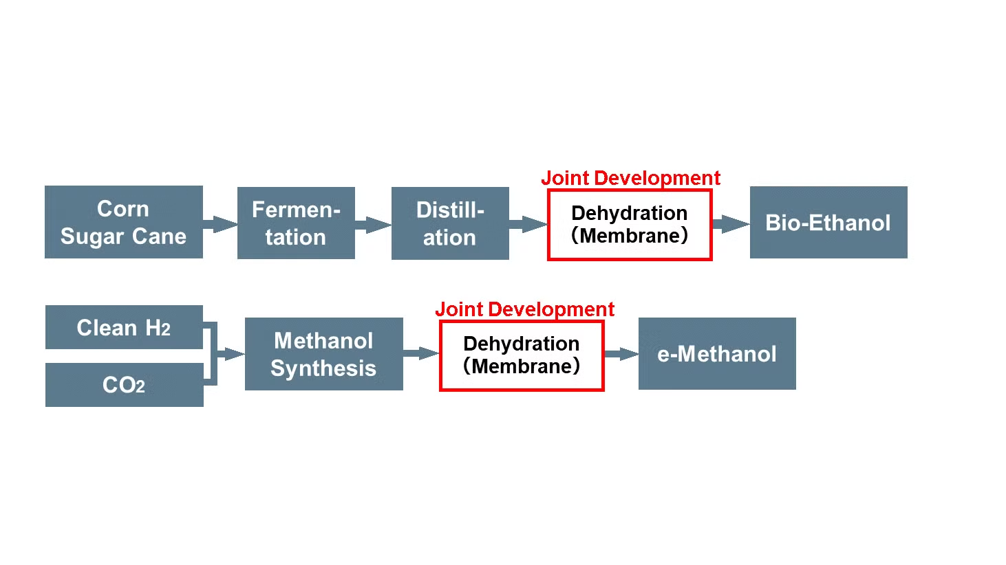 ♦ By utilizing membrane dehydration systems, the companies will work to realize low-cost and to optimize the efficiency of their manufacturing processes of next-generation clean fuels contributing to the future establishment of a stable supply system.