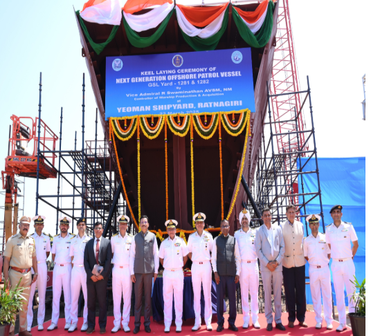 The NGOPVs, each with an approximate tonnage of 3,000 tons, are designed for various missions, including coastal defense and surveillance, search and rescue operations, protection of offshore assets, and anti-piracy efforts. The fabrication of the main hull blocks for Yard 1281 and Yard 1282 is underway at YMSPL’s facilities in Ratnagiri, aligning with GSL’s construction strategy. The keel laying ceremony was attended by Vice Admiral R Swaminathan, Controller of Warship Production and Acquisition, along with senior officials from the Indian Navy, GSL, and YMSPL.
