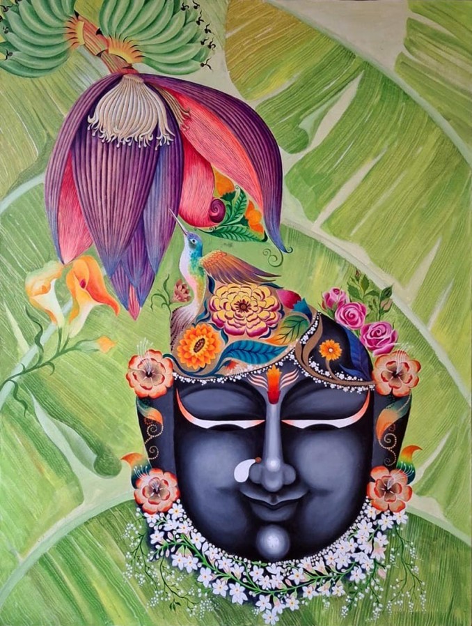 Every ‘swaroop’ of Shreenathji inspires her to explore deeper meanings, using vibrant colors and natural forms to evoke the Lord’s omnipresence. Through her art, she conveys that Shreenathji is not just a subject but an eternal source of inspiration, deeply intertwined with nature.With unwavering devotion and artistic passion, Shubhangi Samant continues her creative journey, aspiring to bring alive the divine through her brushstrokes, one painting at a time.