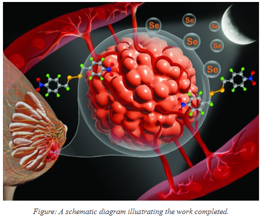 The team synthesized it via nucleophilic substitution of benzylic halides with Na₂Se₂ and NaHSe, obtained by reducing elemental selenium with sodium borohydride under an inert atmosphere. This newly synthesized nitro-substituted organoselenium compound, called diselenide 7, was found to reduce the invasiveness of aggressive triple-negative breast cancer cells by modulating various signaling pathways. In Swiss albino mice with breast adenocarcinoma, it significantly decreased tumour volume and reduced angiogenesis and metastasis, extending the animals’ lifespan.