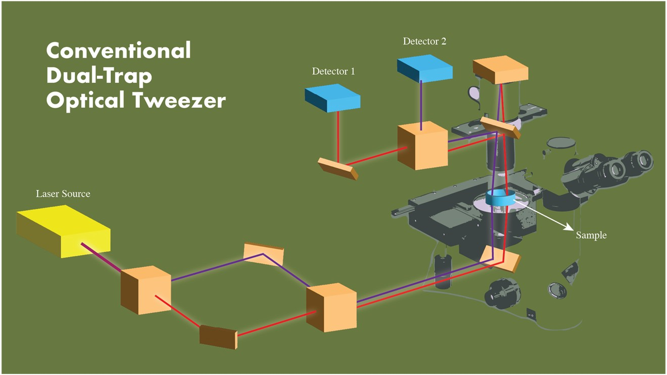 Decades after the invention of optical tweezers, some designs still face the challenge of versatility for current applications. Interactions between trapped micron-sized particles, mechanical properties of biopolymer filaments, and force generation by protein nanomachines are most often researched in a dual-trap system, where two beams are used to control the trapped particles. But there is a problem: traditional systems rely on detecting light that passes through the trapped particles, and this method has limitations.